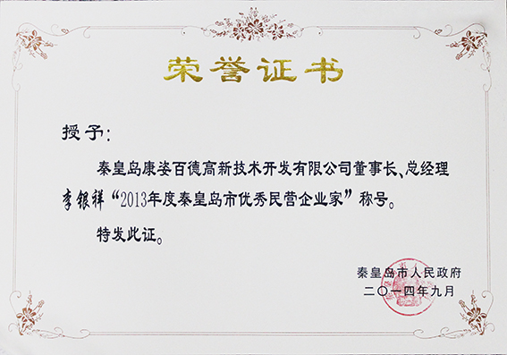 2019年6月李銀祥董事長(zhǎng)榮獲2019年度“最美秦皇島人 最美民營(yíng)企業(yè)家”個(gè)人榮譽(yù)稱號(hào)。