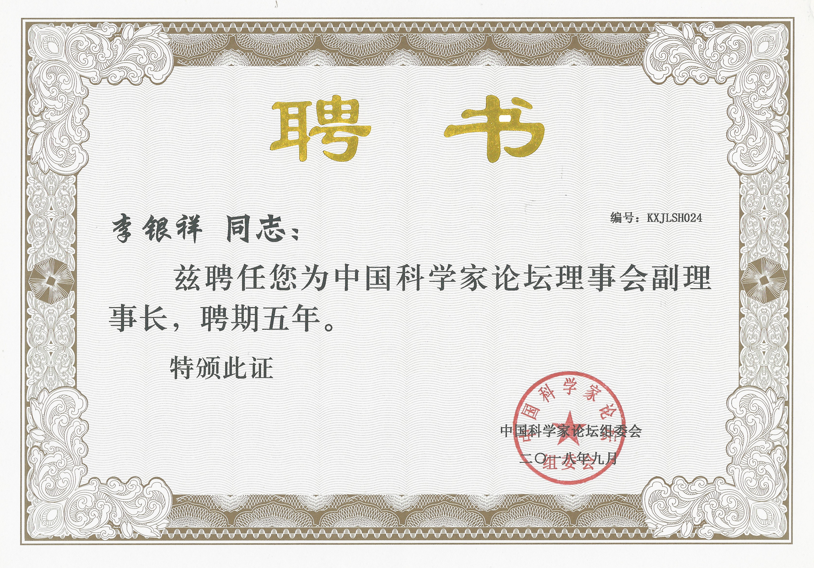 7月,董事長(zhǎng)李銀祥應(yīng)邀出席“第六屆中國(guó)科學(xué)家論壇”, 被任命為副理事長(zhǎng)。