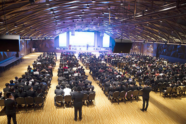 與會(huì)人員聚精會(huì)神地聽(tīng)課