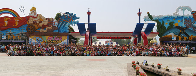 經(jīng)銷商們?cè)跇?lè)島海洋公園門(mén)前留影