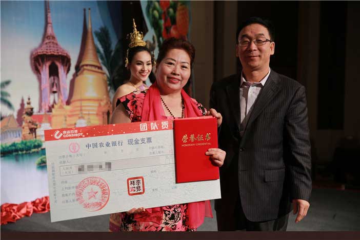李總為榮獲團(tuán)隊(duì)貢獻(xiàn)獎(jiǎng)的經(jīng)銷商頒獎(jiǎng)
