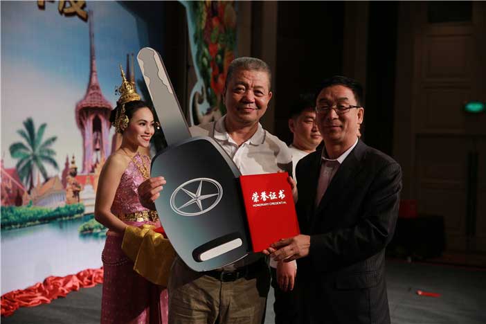 李總為榮獲銷售單項(xiàng)獎(jiǎng)的經(jīng)銷商頒發(fā)商務(wù)汽車