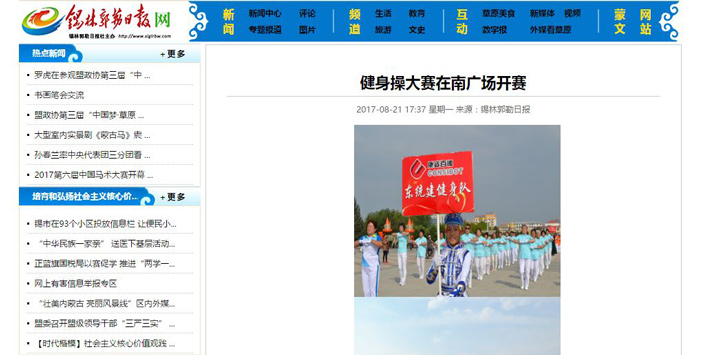錫林郭勒日?qǐng)?bào)對(duì)康姿百德健身操展演活動(dòng)進(jìn)行報(bào)道
