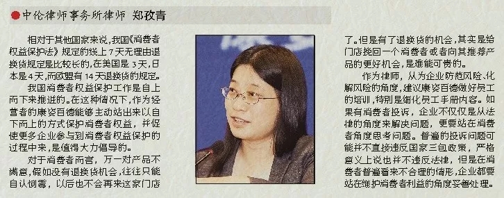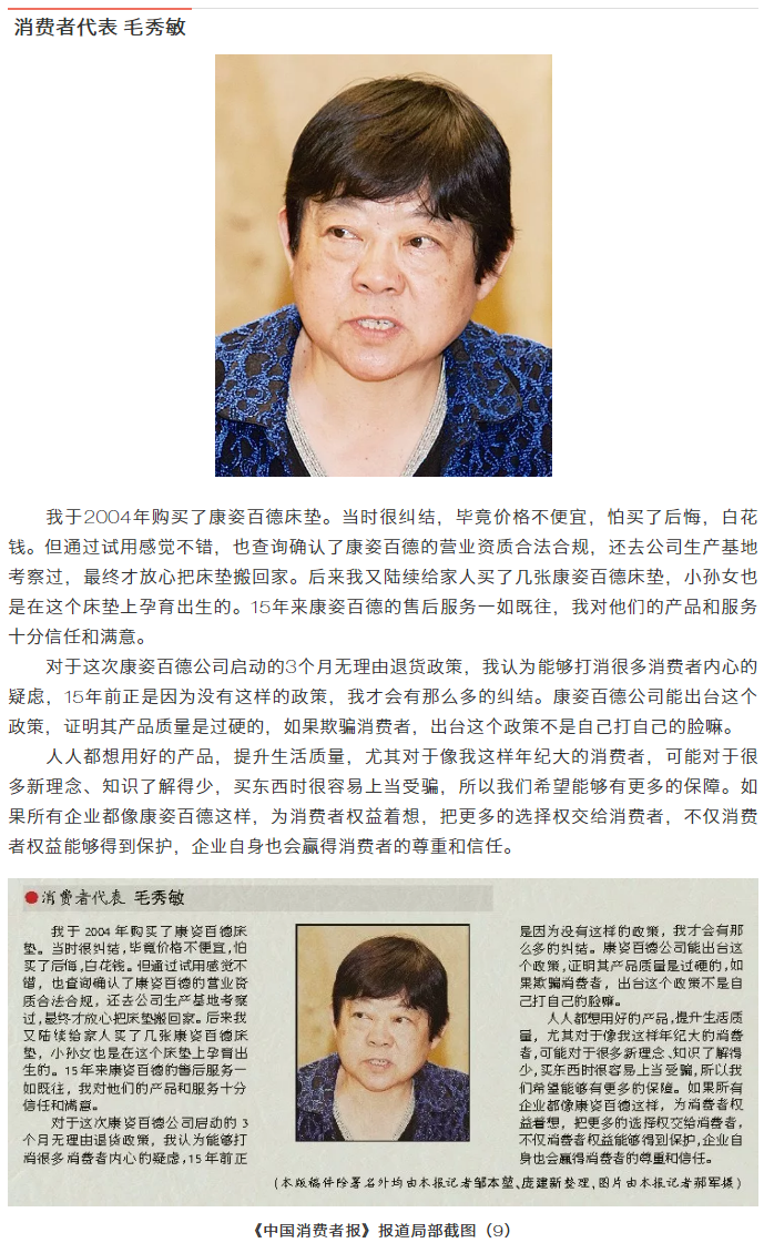 我國消費(fèi)者權(quán)益保護(hù)工作是自上而下來推進(jìn)的。在這種情況下,作為經(jīng)營者的康姿百德能夠主動站出來以自下而上的方式保護(hù)消費(fèi)者權(quán)益,并促使更多企業(yè)參與到消費(fèi)者權(quán)益保護(hù)的過程中來,是值得大力倡導(dǎo)的。