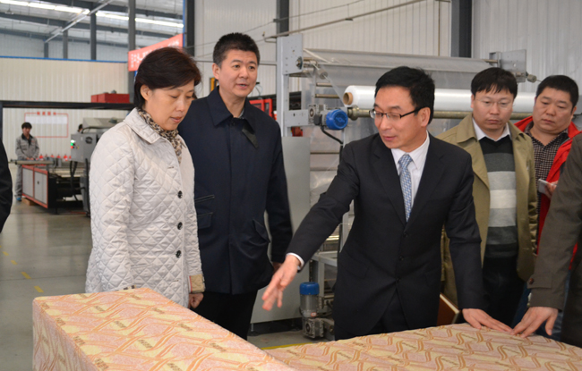 市委書記田向利(右三)參觀我公司世界第一條磁性寢具自動化生產(chǎn)線
