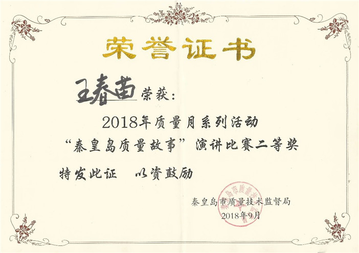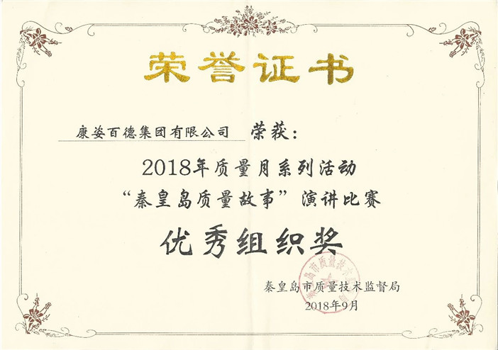 2018年9月26日,“秦皇島質(zhì)量故事”演講比賽總決賽隆重召開。為響應(yīng)國家2018年質(zhì)量月活動,康姿百德積極參與,并榮獲二等獎及優(yōu)秀組織獎。