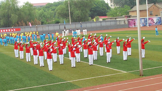 近日,山西長(zhǎng)治襄垣第二十屆老年運(yùn)動(dòng)會(huì)在縣政府體育場(chǎng)舉行,來(lái)自當(dāng)?shù)氐?6名康姿百德健身操愛好者在運(yùn)動(dòng)會(huì)上進(jìn)行了康姿百德第二套健身操展演。 康姿百德健身操展演方隊(duì),由襄垣社會(huì)各界的康姿百德健身操愛好者組成,他們把康姿百德第二套健身操的背景音樂《幸福愛河》作為伴奏音樂,將第二套健身操的大部分動(dòng)作巧妙的組合在一起,動(dòng)作舒展流暢,隊(duì)形變化靈活,贏得了與會(huì)人員的交口稱贊。 康姿百德健身操方隊(duì)的展演,不僅宣傳了康姿百德健身理念,提升了康姿百德品牌形象,同時(shí)也吸引更多的人加入康姿百德健身行列,把“全民健身·快樂同行”大型公益活動(dòng)推向高潮。