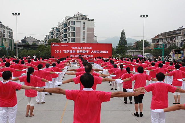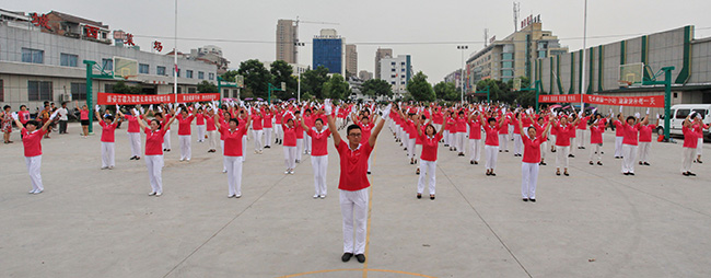 8月8日一大早,為迎接第六個(gè)“全民健身日”的到來(lái),浙江仙居廣大市民相約來(lái)到城區(qū)西門,伴隨著優(yōu)美的樂(lè)曲,共同舞起康姿百德健身操,向人們展示激情與活力。動(dòng)聽(tīng)的音樂(lè)、優(yōu)美的舞姿,引得行人不時(shí)駐足觀看,開(kāi)心幸福的笑容蕩漾在每個(gè)人的臉上,全民健身的理念也深深扎根于每個(gè)人的心中。