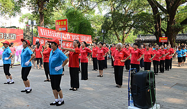 2014年 8月3日,為迎接第5個(gè)“全民健身日”的到來和第14屆江西省省運(yùn)會(huì)在贛州市舉行,贛州市章貢區(qū)體育局聯(lián)合贛州康姿百德戶外健身營共同舉辦了“迎省運(yùn)全民健身日”活動(dòng)。 由贛州康姿百德戶外健身營160多名成員組成的七個(gè)健身操表演方隊(duì)和一個(gè)康姿百德女子舞蹈隊(duì),在健身操、舞蹈、武術(shù)、太極拳等展演中最為引人注目,對(duì)宣傳立體健康、助推全民健身、提高康姿百德的社會(huì)影響力起到了積極作用。 江西七臺(tái)、贛州電視臺(tái)等新聞媒體,對(duì)本次活動(dòng)進(jìn)行了現(xiàn)場(chǎng)采訪,其活動(dòng)新聞將于近期在上述各臺(tái)新聞節(jié)目中播出。