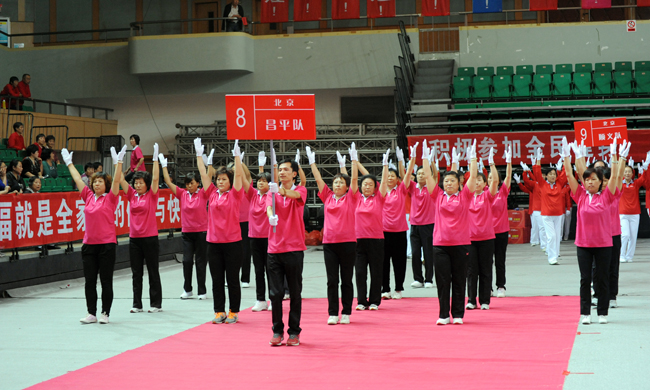 北京昌平隊(duì) 從選拔、備戰(zhàn)到今天的總決賽,一路走來,參賽隊(duì)員們的動(dòng)作越來越熟練,越來越標(biāo)準(zhǔn),團(tuán)隊(duì)凝聚力越來越強(qiáng)。這些活力十足的中老年朋友并沒有滿足于越跳越熟練這一標(biāo)準(zhǔn),不少參賽隊(duì)伍在原有健身操基礎(chǔ)上又添加了一些新的成分。充滿個(gè)性的隊(duì)名、色彩鮮艷的運(yùn)動(dòng)裝、揮舞的彩旗等創(chuàng)意,在總決賽的舞臺(tái)上給所有觀眾打造了一臺(tái)視覺盛宴,讓參賽節(jié)目更有看頭。賽場上,參賽隊(duì)員的展示非常到位,微笑始終掛在臉上,就連賽前的口號(hào)都是精心準(zhǔn)備、反復(fù)推敲?;盍o限的她們感染了舞臺(tái)下的每一位觀眾,現(xiàn)場觀眾都在用自己最熱烈掌聲、最大的歡呼聲表達(dá)著對(duì)參賽選手的喜愛和尊重。 |
