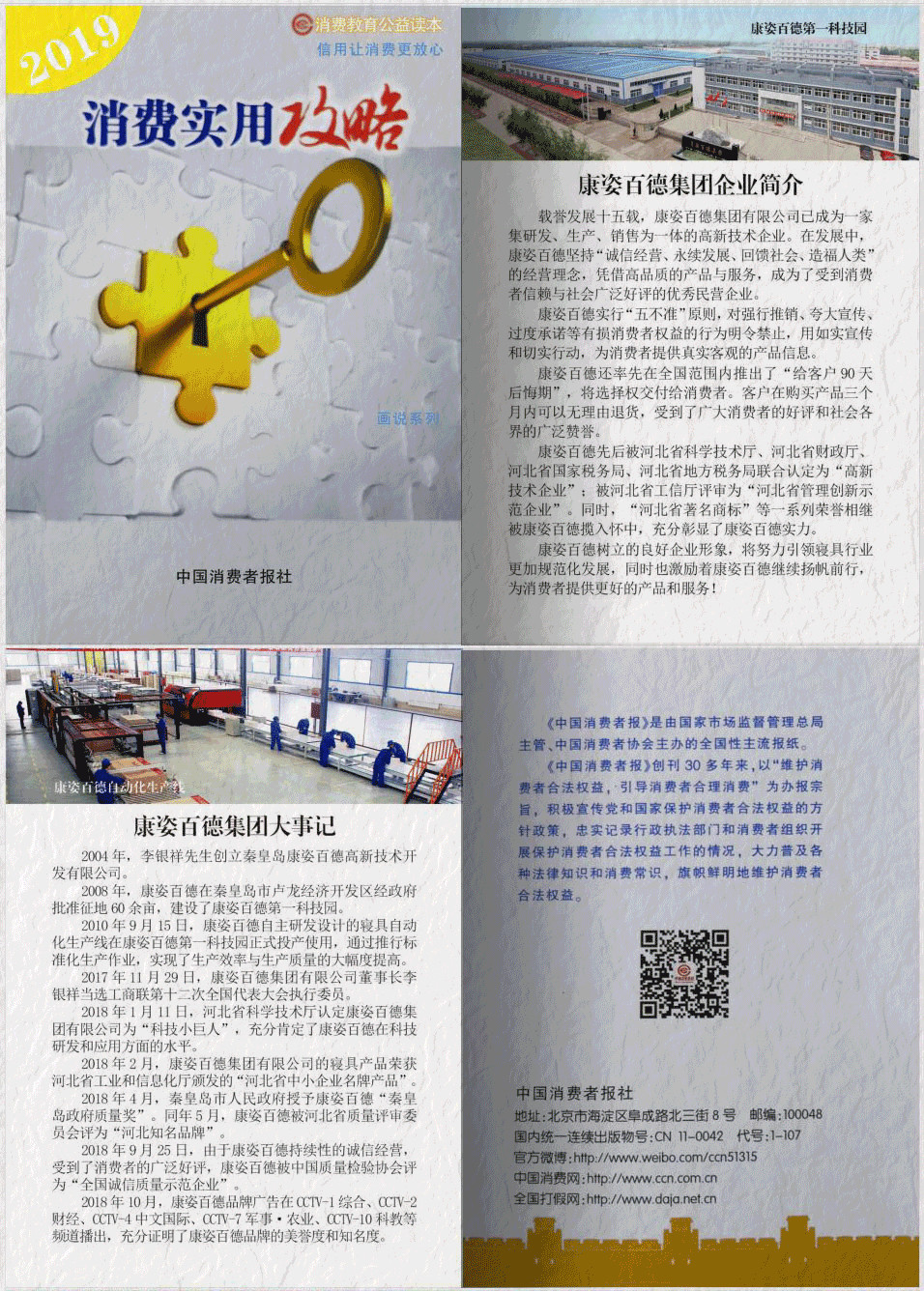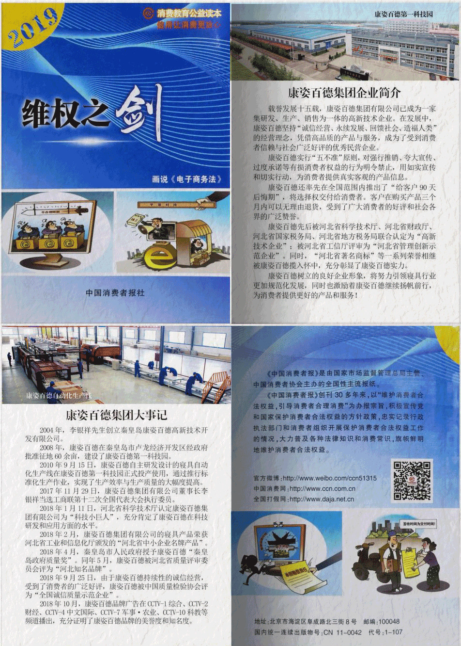中國消費者報社印發(fā)的普法手冊《消費實用攻略》、《維權(quán)之劍》,均對康姿百德進行了報道。