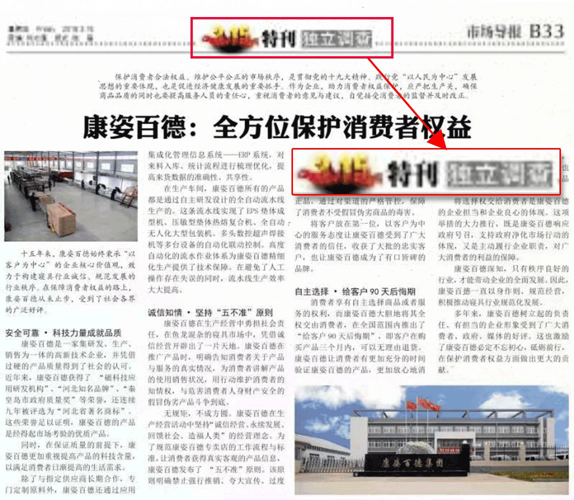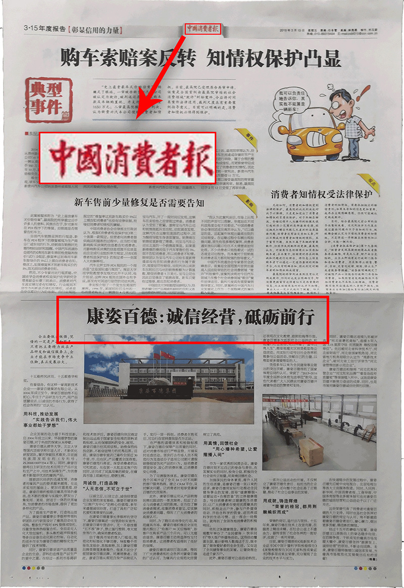 在3·15年度報告【彰顯信用的力量】專題中,《中國消費者報》對康姿百德“九十天無理由退貨”等一系列誠信經(jīng)營、保護消費者權(quán)益的行為進行了專題報道。