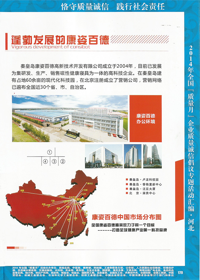 在此次活動中,康姿百德公司作為具有社會責(zé)任感、講誠信、質(zhì)量好、重視質(zhì)量安全的典型企業(yè),被中國質(zhì)量檢驗協(xié)會選編到《2014年全國“質(zhì)量月”活動企業(yè)質(zhì)量誠信倡議專題活動匯編》中,這是國家有關(guān)部委和社會各界對康姿百德公司的認可和肯定,對于激勵公司進一步加強質(zhì)量誠信建設(shè)具有十分積極的意義。