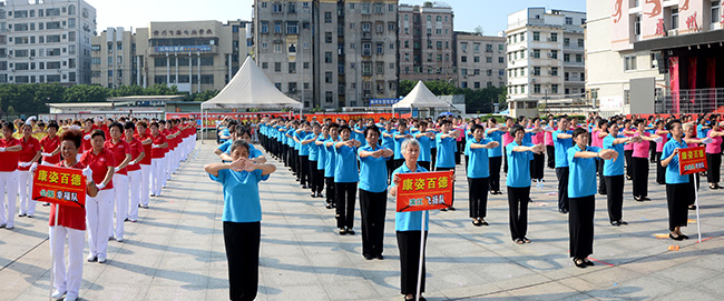 9月28日,贛州康姿百德戶外健身營攜手章貢區(qū)委老干部局、章貢區(qū)體育局、章貢區(qū)老年體協(xié),在章貢奧林匹克廣場舉行了以“健身家園 最美夕陽”為主題的康姿百德健身操展演活動(dòng),廣大老年朋友歡聚一堂,喜迎國慶節(jié)和重陽節(jié)的到來,暢享健康幸福新生活。 本次活動(dòng)共有15個(gè)代表隊(duì)、600多名康姿百德健身操愛好者參加,大家在《開門紅》、《中國美》等優(yōu)美的旋律下,舞動(dòng)健康,舞動(dòng)精彩,展示了老年朋友積極向上的生活熱情,向全社會(huì)倡導(dǎo)“老有所樂、老有所為”的生活情趣,在當(dāng)?shù)禺a(chǎn)生了良好的反響。贛州電視臺(tái)、章貢區(qū)電視臺(tái)對(duì)本次活動(dòng)進(jìn)行了新聞報(bào)道。