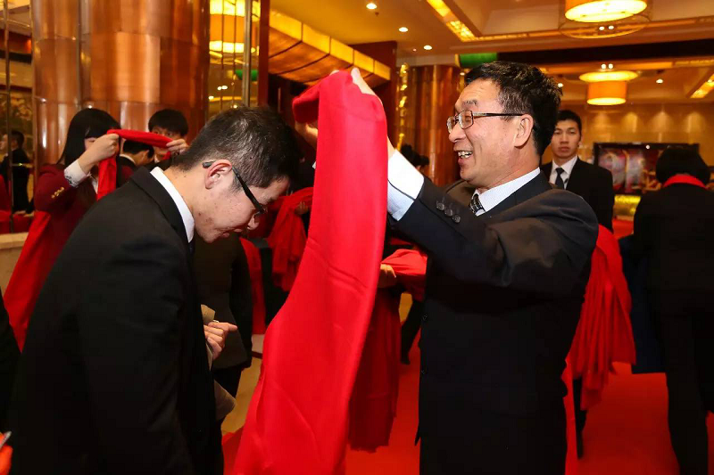 公司領(lǐng)導(dǎo)為所有參加年會的員工和經(jīng)銷商帶上紅圍巾,送上最真摯的祝福。