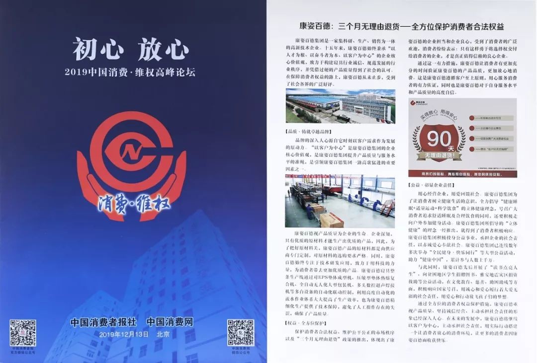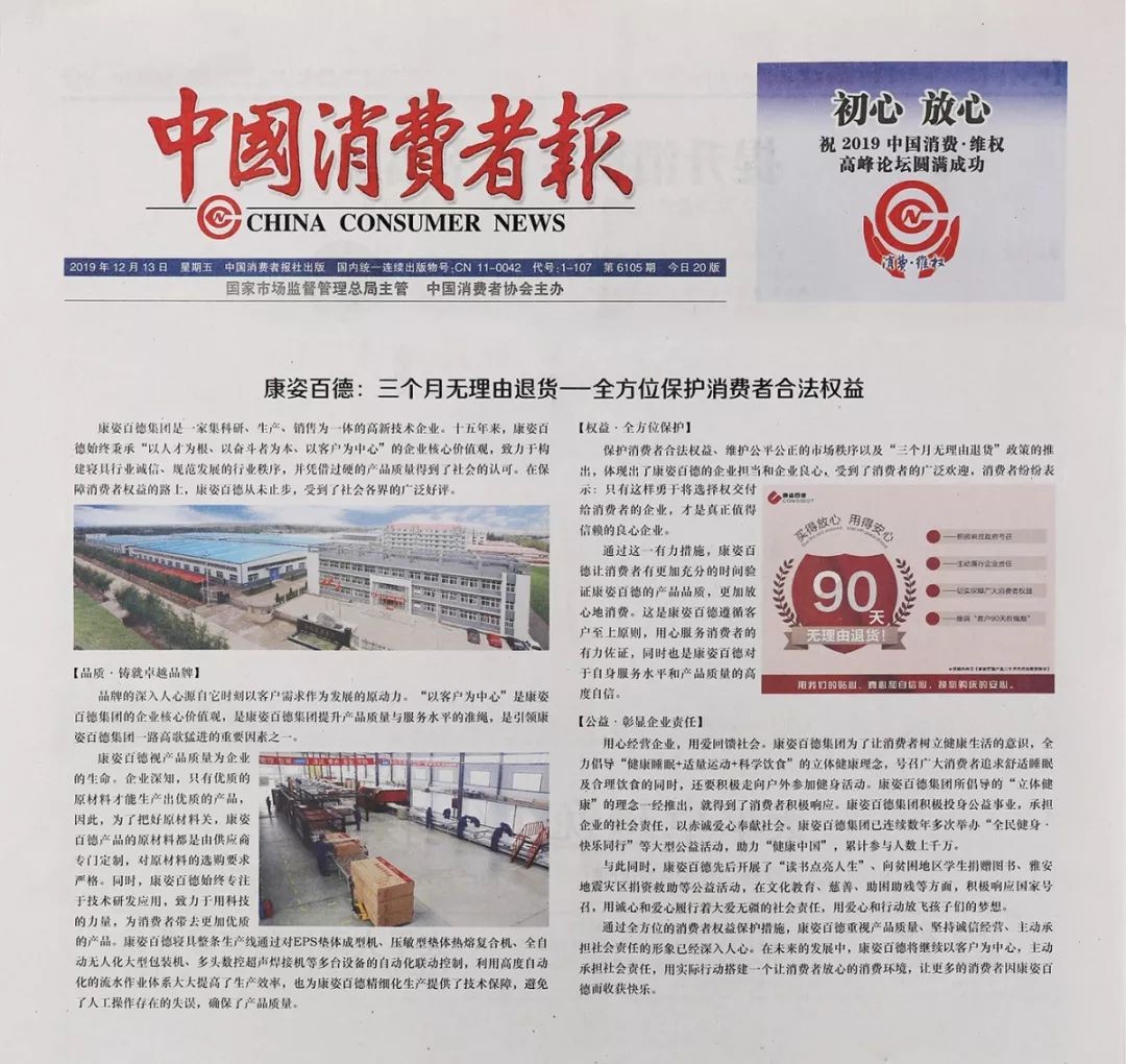 導(dǎo)讀2019年12月13日,《中國(guó)消費(fèi)者報(bào)》、《中國(guó)消費(fèi)者雜志》同步對(duì)康姿百德集團(tuán)進(jìn)行報(bào)道,以下是報(bào)道全文: