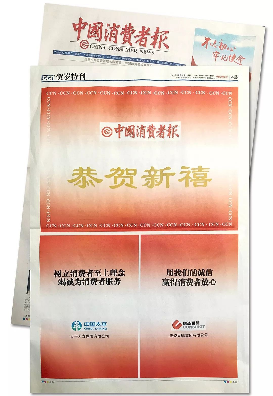 2019年12月31日,康姿百德再次榮登《中國消費者報》,這也是2019年第四次榮登此報。本次《中國消費者報》邀請了在消費維權領域成績優(yōu)秀的幾家知名企業(yè),康姿百德作為受邀企業(yè)之一在賀歲版面進行刊登,在新年來臨之際,為廣大消費者送上新春祝福。