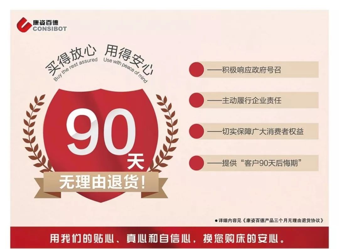 1.三個(gè)月無理由退貨,讓康姿百德的產(chǎn)品質(zhì)量和服務(wù)質(zhì)量,得到了進(jìn)一步的提高。