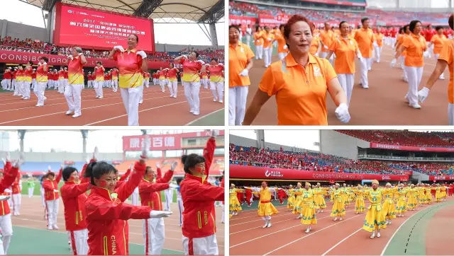 在賽場(chǎng)上,參賽隊(duì)員們或身著簡約時(shí)尚的運(yùn)動(dòng)服,或身著絢麗多彩的民族服飾,在環(huán)形的奧體中心舞動(dòng)成了一道流動(dòng)風(fēng)景,渲染出一派盛世歡歌的壯美景象。