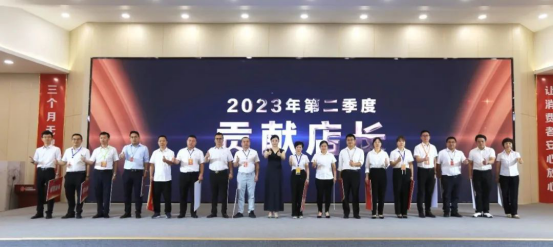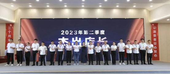 培訓會結束后,自營公司還舉辦了2023年第二季度頒獎典禮。頒獎典禮上,李銀祥董事長對自營公司取得的優(yōu)異成績、對自營經(jīng)理和店長們的辛勤付出給予了充分的肯定與認可,并親自為獲獎的自營店長和經(jīng)理頒獎,同時也鼓勵其他經(jīng)理和店長以先進為榜樣,銳意進取、奮勇向前,為公司做出更加卓越的貢獻!