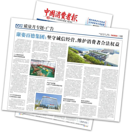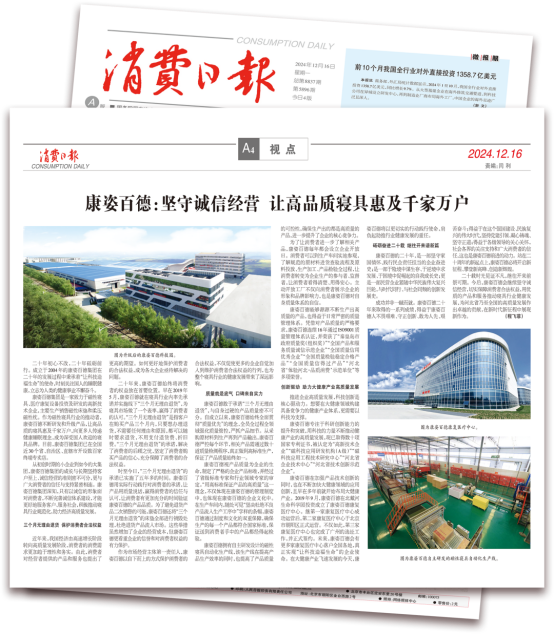 《消費(fèi)日?qǐng)?bào)》于1985年創(chuàng)刊,由國(guó)務(wù)院國(guó)有資產(chǎn)監(jiān)督管理委員會(huì)舉辦,中國(guó)輕工業(yè)聯(lián)合會(huì)主管主辦。今年2月,消費(fèi)日?qǐng)?bào)以“康姿百德:保護(hù)消費(fèi)者合法權(quán)益 助力營(yíng)造誠(chéng)信消費(fèi)環(huán)境”為題,對(duì)康姿百德進(jìn)行了專版報(bào)道。