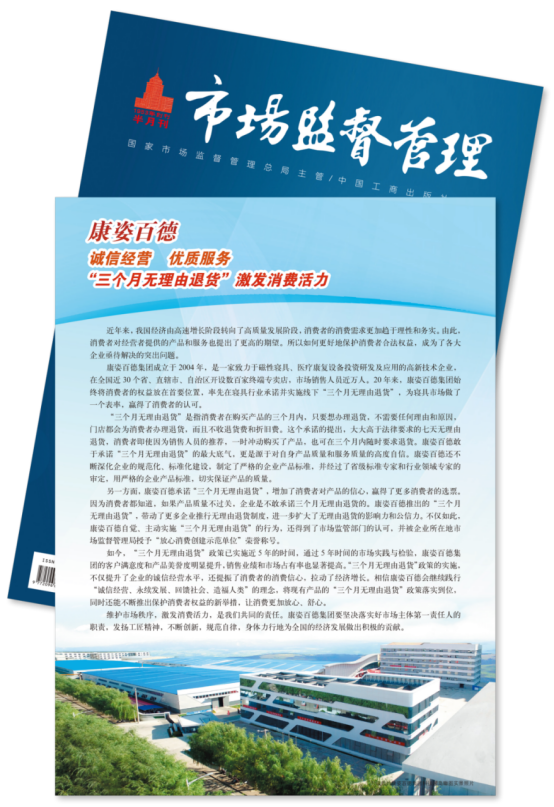 今年12月,《市場(chǎng)監(jiān)督管理》半月刊專題報(bào)道再次以《康姿百德“三個(gè)月無(wú)理由退貨”--釋放消費(fèi)潛力 激發(fā)消費(fèi)活力》為題,全面、詳細(xì)地報(bào)道了康姿百德。《市場(chǎng)監(jiān)督管理》半月刊對(duì)康姿百德的多次專題報(bào)道,是對(duì)康姿百德的認(rèn)可,也是激勵(lì)。康姿百德將一如既往地堅(jiān)持誠(chéng)信經(jīng)營(yíng),不斷提升產(chǎn)品和服務(wù)質(zhì)量,為寢具市場(chǎng)在保障消費(fèi)者權(quán)益方面做出表率,帶動(dòng)更多企業(yè)推行無(wú)理由退貨制度,為經(jīng)濟(jì)高質(zhì)量發(fā)展做出新的貢獻(xiàn)。