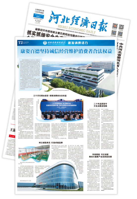 《河北經(jīng)濟(jì)日?qǐng)?bào)》由河北日?qǐng)?bào)報(bào)業(yè)集團(tuán)主辦,是河北省委、省政府指導(dǎo)全省經(jīng)濟(jì)工作的重要輿論陣地。作為河北省優(yōu)秀企業(yè),康姿百德拉動(dòng)了經(jīng)濟(jì)消費(fèi),對(duì)河北省乃至全國(guó)消費(fèi)者權(quán)益保護(hù)起到了積極、深遠(yuǎn)的影響。因在誠(chéng)信經(jīng)營(yíng)和消費(fèi)者權(quán)益保護(hù)等方面取得的優(yōu)異成績(jī),《河北經(jīng)濟(jì)日?qǐng)?bào)》連續(xù)6年對(duì)康姿百德進(jìn)行報(bào)道。