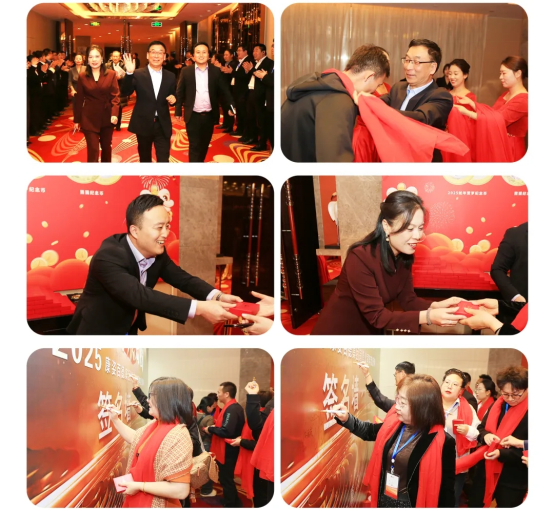 在璀璨燈光下,銷售精英們臉上綻放著溫暖的笑容。踏著紅毯,家人們意氣風(fēng)發(fā)地邁向星光大道。公司領(lǐng)導(dǎo)將精心準(zhǔn)備的伴手禮送到每個(gè)參會(huì)家人的手里,并給家人們戴上象征“鴻運(yùn)當(dāng)頭”的紅絲巾。簽名墻上龍飛鳳舞的每一筆都飽含豪情,攝影師鏡頭定格的每個(gè)笑臉都凝結(jié)著團(tuán)隊(duì)榮耀的瞬間。