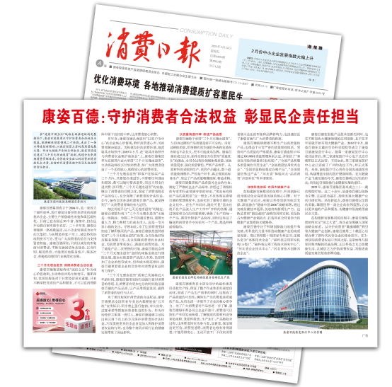《消費日報》于1985年創(chuàng)刊,由國務(wù)院國有資產(chǎn)監(jiān)督管理委員會舉辦,中國輕工業(yè)聯(lián)合會主管主辦。康姿百德積極響應(yīng)國家號召,主動維護消費者合法權(quán)益,僅2024年,消費日報就2次對康姿百德進行了專版報道。