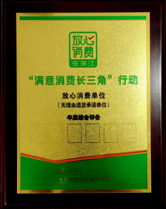 義烏康姿百德榮獲“放心消費單位”榮譽稱號