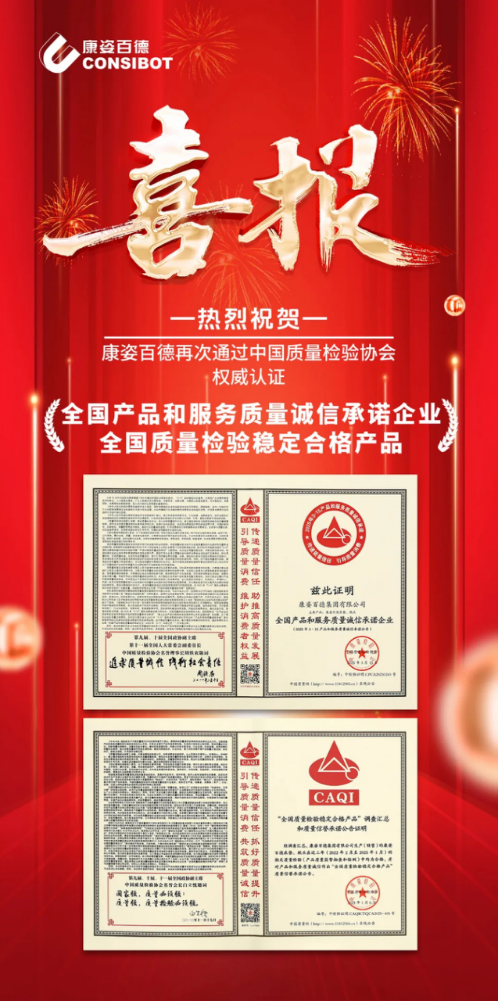 2025年315國(guó)際消費(fèi)者權(quán)益日期間,康姿百德憑借過硬的質(zhì)量管理能力和對(duì)產(chǎn)品質(zhì)量的高度重視,再次榮獲由中國(guó)質(zhì)量檢驗(yàn)協(xié)會(huì)頒發(fā)的“全國(guó)產(chǎn)品和服務(wù)質(zhì)量誠信承諾企業(yè)”、“全國(guó)質(zhì)量檢驗(yàn)穩(wěn)定合格產(chǎn)品”兩項(xiàng)權(quán)威認(rèn)證。